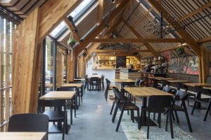 Het bezoekerspaviljoen is in open vorm een licht restaurant, in gesloten vorm een ingetogen schuur die opgaat in de omgeving. De opdrachtgever Stichting Duivenvoorde vroeg 70F architecture een gebouw te ontwerpen dat eruitziet als een schuur, maar tegelijkertijd transparant is en de gasten het gevoel geeft dat ze welkom zijn.