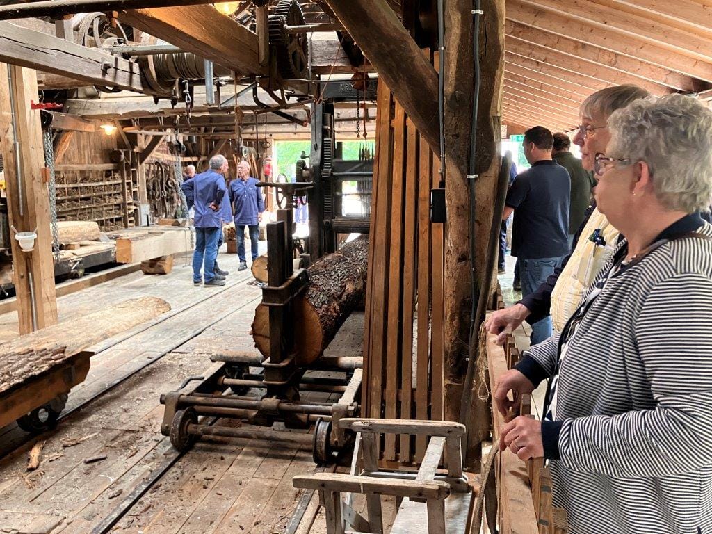 Onder het oog van alle genodigden werd er direct na de opening weer rondhout gezaagd met behulp van stoom. De ketel was dan ook al goed op temperatuur. De zagerij in Groenlo krijgt rondhout aangeleverd door Rondhouthandel Ten Bulte. Dit bedrijf neemt het gezaagd hout ook weer af. ‘Zonder deze vormen van samenwerking kunnen wij geen levend museum draaiend houden. We hebben hier nu weer twee werkende zagen (horizontaale n verticaal) op stoomkracht. Voor Ten Bulte zagen we het hout zoals zij het hebben willen.’